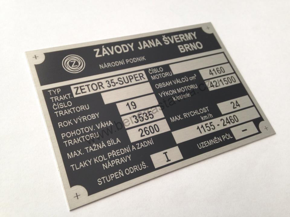 Výrobní štítek - Zetor Super 35Skladem380,00 CZK/ ks314,05 CZK bez DPH