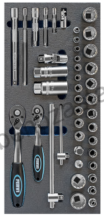 - FERVI 1/4" a 3/8" sada s ráčnou a hlavicemi 12hran v pěnovém modulu 1/3