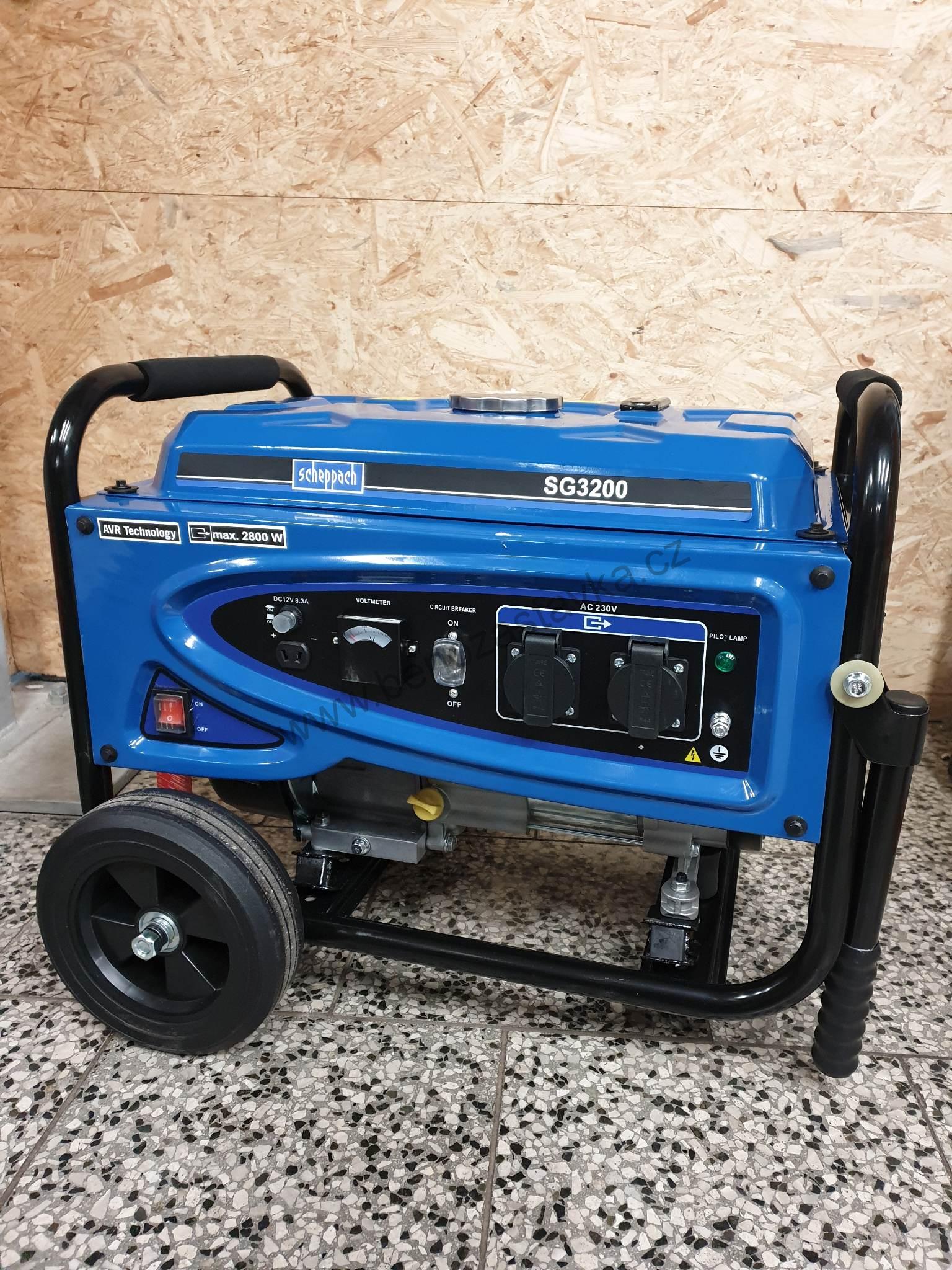 Elektrocentrála Scheppach SG 3200 má díky výkonu velice solidní záběr použití. Trvalý výkon 2500 W již dává uživateli možnost napájet nejenom elektrospotřebiče odporového typu (žárovky, topná tělíska, kávovary ap.), ale i celou škálu elektrospotřebičů indukčního typu, u kterých je nutné počítat s větší výkonovou rezervou kvůli rozběhu a ztrátám ve vinutí elektromotoru při provozu (ruční el. nářadí, el. čerpadla, stroje s většími elektromotory ap.). Pro kvalitu elektrocentrály je klíčovým prvkem motor a alternátor. Scheppach používá jen certifikované motory a alternátory prověřené v dlouhodobých zátěžových testech při nepřetržitém provozu. Navíc jsou elektrocentrály Scheppach vybaveny špičkovým napájením s automatickou regulací AVR (Automatic Voltage Regulator), takže nepoškodí ani spotřebiče náročnější na kvalitu napájecího proudu. Velká nádrž 15 l je chráněna rámovou konstrukcí a dovolí uživateli mnohahodinový bezstarostný provoz. Velká nafukovací kola a 2 přepravní madla výrazně ulehčují transport stroje.